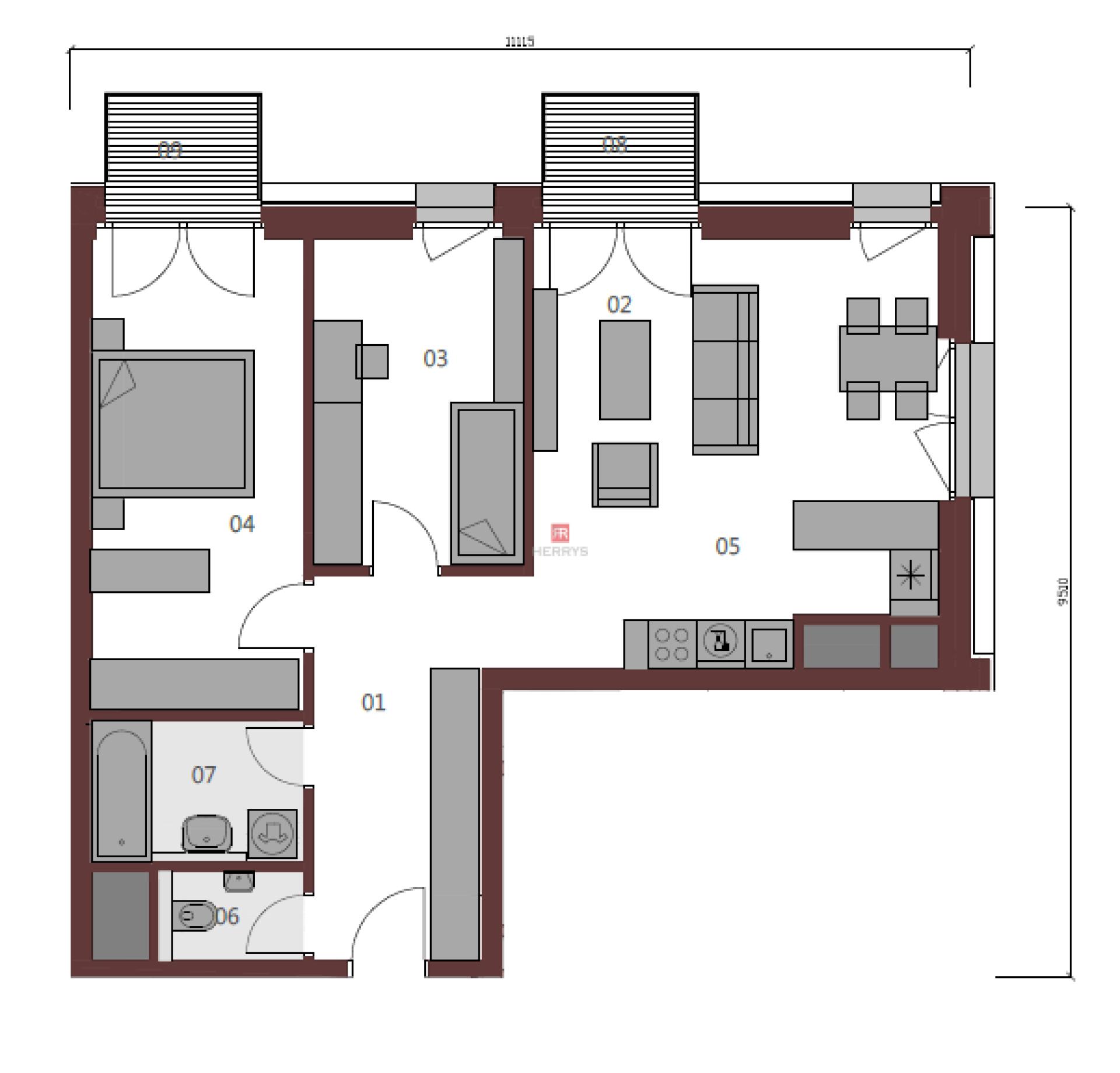 • kompletne zariadený apartmán s funkčnou dispozíciou, úlne nový, doposiaľ neobývaný